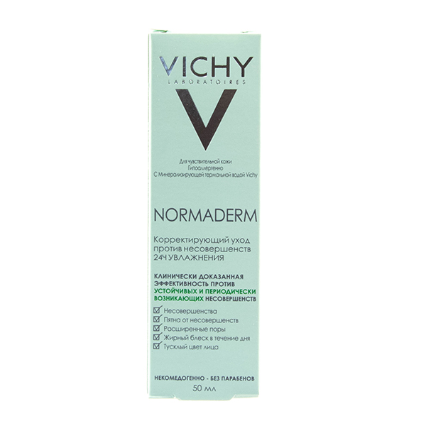 Лаборатории VICHY впервые объединили 4 активных дерматологических компонента для увлажнения и восстановления кожи с несовершенствами в новом уходе NORMADERM: [Салициловая кислота 1,5% + LHA] корректируют устойчивые и периодически возникающие несовершенства, PhE-Resorcinol способствует усилению процессов регенерации в эпидермисе и борется со следами несовершенств, AirLicium нейтрализует жирный и влажный блеск в течение дня.