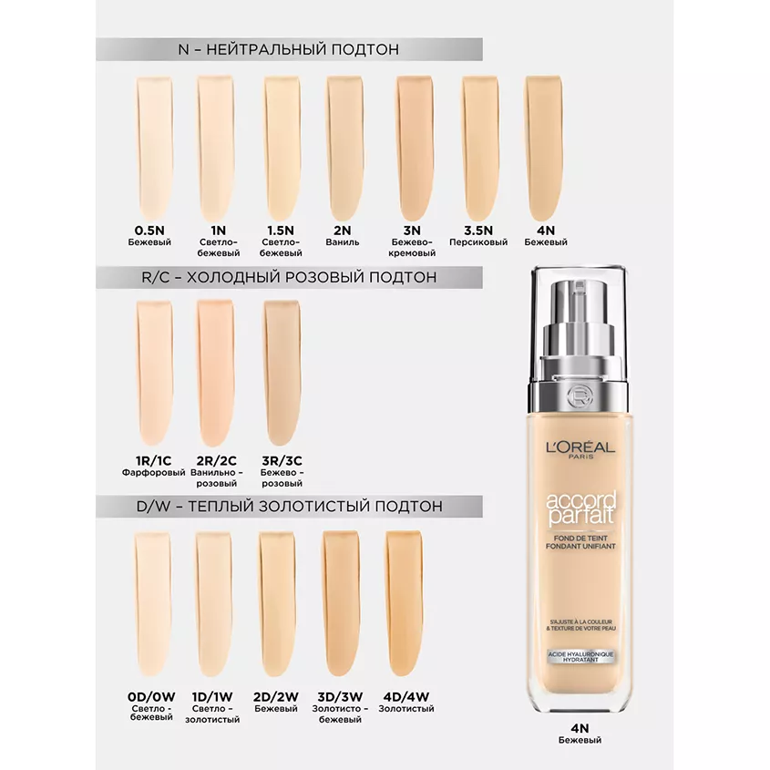 Жидкий тональный крем Accord Parfait от L'Oreal Paris выравнивает тон, подстраивается к цвету и текстуре кожи. Заметно преображает кожу за 2 недели применения: кожа более гладкая и сияющая. Ультра-тонкие пигменты подстраиваются под тон и подтон кожи. Формула на 80%, состоящая из увлажняющего крема с гиалуроновой кислотой. 24 часа увлажнения вашей кожи.