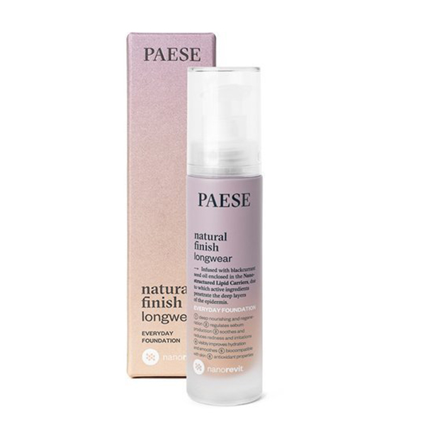 Natural Finish Longwear Foundation – тональная основа создана на основе инновационных технологий. Обеспечивает покрытие от среднего до плотного без ощущения эффекта маски. Благодаря богатому составу разглаживает, питает, успокаивает кожу, делая ее здоровой и сияющей.