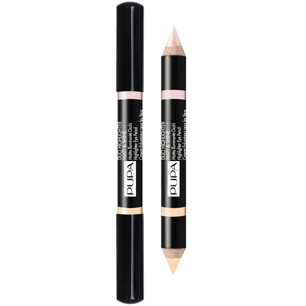 Большой двойной карандаш: с одной стороны - матовый, с другой -блестящий/перламутровый. Для коррекции недостатков кожи и создания "световых точек".