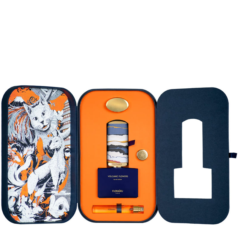 Volcanic Flowers — яркий, волнующий цветочно-древесный унисекс-парфюм с красивыми гурманскими оттенками, выпущенный в 2020 году французским нишевым парфюмерным брендом Floraiku. Аромат заключен в характерный для бренда прямоугольный флакон с высокой расписной крышечкой. На этот раз флакон окрашен в темно-синий цвет, а крышечка украшена принтом покрытого облаками неба.