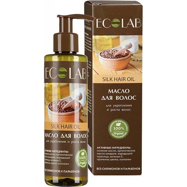 льняное масло значительно уменьшает выпадение волос, укрепляет корни волос и восстанавливает волосяную луковицу, нормализует жировой баланс кожи головы. Протеины шелка способствуют удержанию влаги, защищают волосы от пересушивания, придают волосам мягкость и гладкость, красивый блеск, восстанавливают структуру. Органическое масло миндаля укрепляет волосы, стимулирует их рост, питает, увеличивает эластичность и блеск.