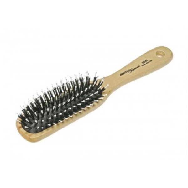 Щётка малая, лакированная, деревянная, прямоугольная, с натуральной щетиной+ нейлоновые зубчиками. 7 рядов. Длина 208 мм, ширина лопатки - 40 мм. Вес 52 г.